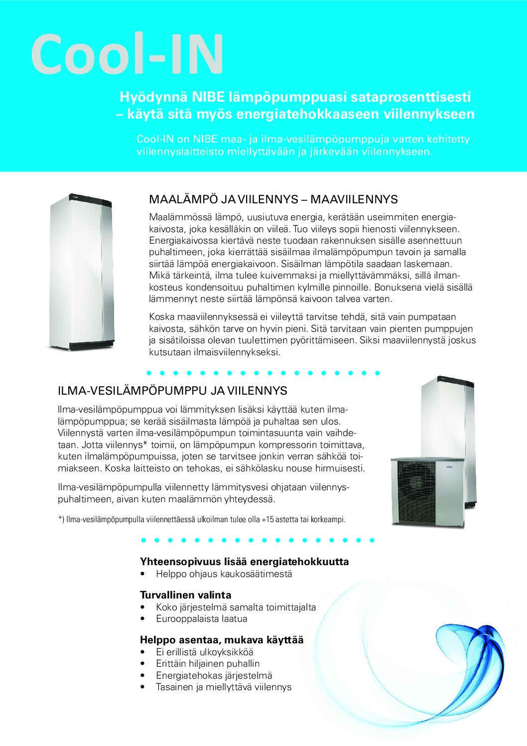 Viilennyskonvektori voidaan asentaa myös ilma-vesilämmön yhteyteen, jolloin se toimii kuin ilmalämpöpumppu puhaltaen lämpimän ilman ulos. Ilma-vesilämpöpumpulla viilentäessä tulee ulkoilmalämpötilan olla +15 tai yli.